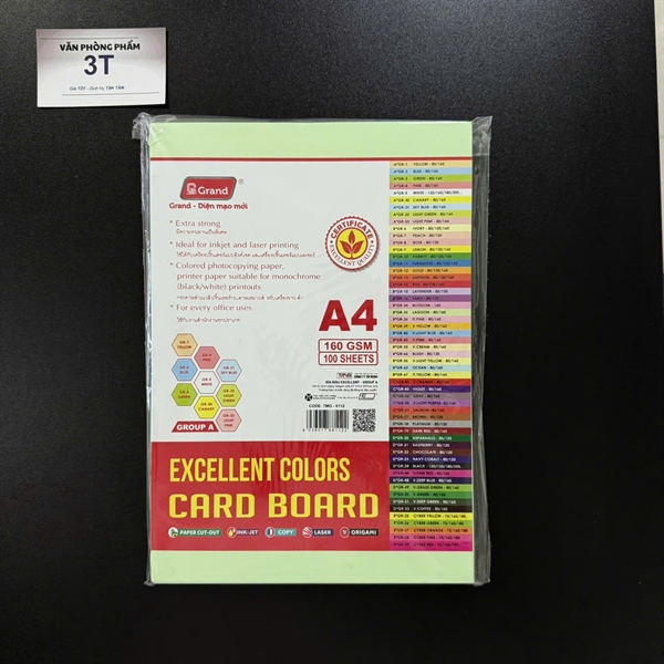 Giấy bìa màu A4 Pgrand thích hợp để dùng tạo ra các sản phẩm từ giấy hoặc in ấn Màu rất sáng và đẹp, chất giấy mịn, không bột giấy