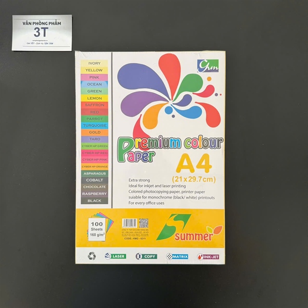 Giấy bìa A4 160GSM (giấy cứng) SUMMER màu VÀNG KEM – Xấp