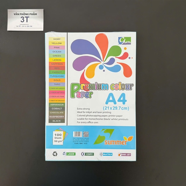 Giấy bìa A4 160GSM (giấy cứng) SUMMER màu XANH BIỂN – Xấp